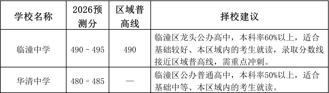 【参考借鉴】远郊区县考生,优先选择本区域内的龙头高中(如临潼中学、鄠邑一中),教学质量更有保障;城六区临界生(460–480分),可关注远郊区县的优质高中,符合跨区报考条件的情况下,录取概率更高,且竞争压力更小。